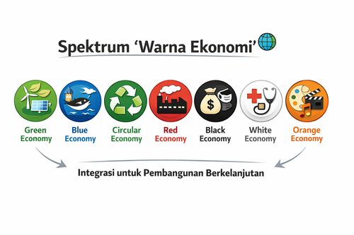 Kesimpulan Integrasi Warna EkonomiKonsep “warna ekonomi” menunjukkan bahwa tidak ada satu pendekatan yang mampu menjawab seluruh tantangan ekonomi global. Setiap warna memiliki kelebihan dan kekurangan masing-masing. Integrasi berbagai pendekatan menjadi solusi terbaik untuk mencapai pembangunan yang berkelanjutan dan inklusif. Bagi Indonesia, kombinasi antara green economy, blue economy, dan orange economy sangat relevan. Sementara itu, pengendalian terhadap black economy dan transformasi dari red economy menjadi penting untuk menjaga stabilitas ekonomi. Dengan demikian, pemahaman terhadap spektrum ekonomi ini menjadi kunci dalam merancang kebijakan masa depan.