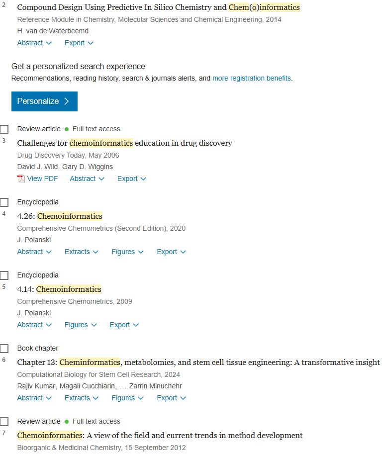 - Chen, William Lingran. "Chemoinformatics: past, present, and future." Journal of Chemical Information and Modeling 46.6 (2006): 2230-2255.
