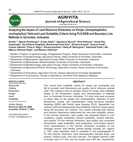 Analyzing the Impact of Land Resource Dimension on Konjac (Amorphophallus onchophyllus) Yield and Land Suitability Criteria Using PLS-SEM and Boundary Line Methods In Gorontalo, Indonesia