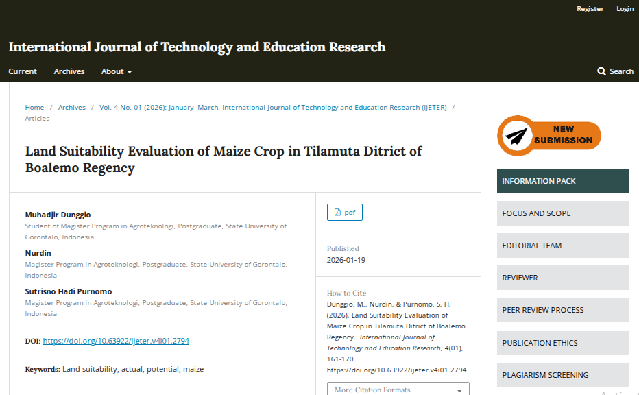 Land Suitability Evaluation of Maize Crop in Tilamuta Ditrict of Boalemo Regency